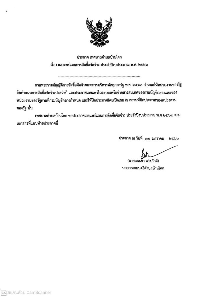 ประกาศเผยแพร่แผนการจัดซื้อจัดจ้าง ประจำปีงบประมาณ พ.ศ. ๒๕๖๖ (โครงการพัฒนาแหล่งท่องเที่ยว วัดหลวงปู่ทอง โดยติดตั้งไฟฟ้าส่องสว่างพลังงานแสงอาทิตย์แบบรอกสลิงหมุนยกพร้อมโคมไฟถนนแอลอีดีประกอบแบตเตอรี่และอุปกรณ์ประจุแบตรี่ในตัวแบบใช้พลังงานจากเซลล์แสงอาทิตย์แยกส่วน จากบ้านโคก ถึงบ้านนาไชฟอง จำนวน ๗๕ ชุด เทศบาลตำบลบ้านโคก อ.สร้างคอม จ.อุดรธานี)