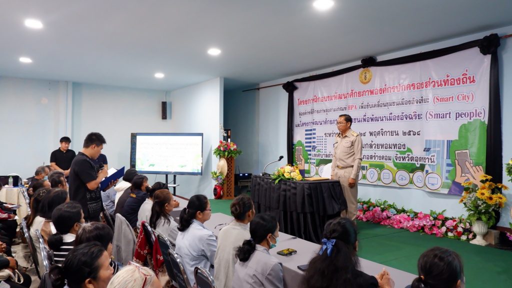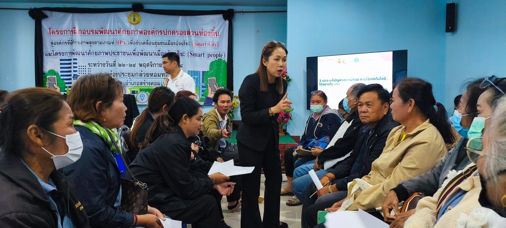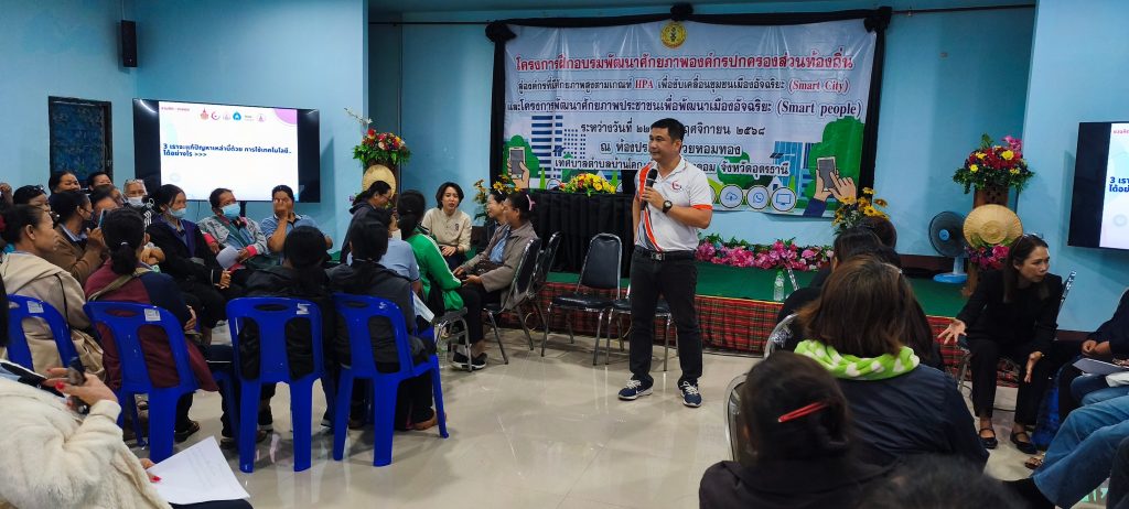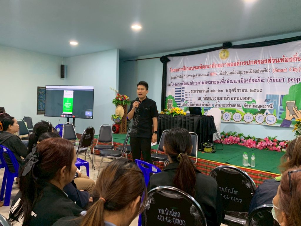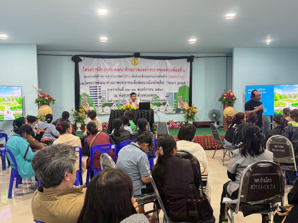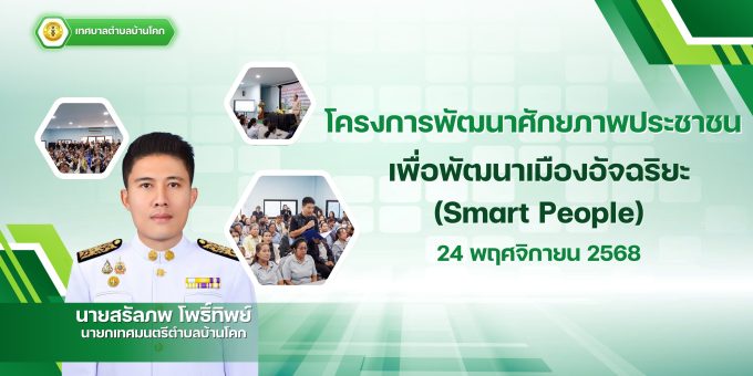 เมื่อวันที่ 24 พฤศจิกายน 2568 เทศบาลตำบลบ้านโคกจัด โครงการฝึกอบรมพัฒนาศักยภาพประชาชนเพื่อพัฒนาเมืองอัจฉริยะ (Smart People) ณ ห้องประชุมกล้วยหอมทอง เทศบาลตำบลบ้านโคก โครงการนี้จัดขึ้นเพื่อส่งเสริมและพัฒนาพลเมืองดิจิทัลในพื้นที่เทศบาลตำบลบ้านโคก ให้สามารถประยุกต์ใช้นวัตกรรมเพื่อพัฒนาคุณภาพชีวิตและการพัฒนาท้องถิ่นอย่างยั่งยืน อาทิ การสร้างระบบข้อมูลชุมชน และการเพิ่มประสิทธิภาพการบริหารจัดการทรัพยากรท้องถิ่น ถือเป็นการเสริมสร้างบุคลากรที่มีศักยภาพสูง พร้อมเป็นแกนนำในการพัฒนาเมืองอัจฉริยะอย่างยั่งยืนในพื้นที่เทศบาลตำบลบ้านโคกต่อไป