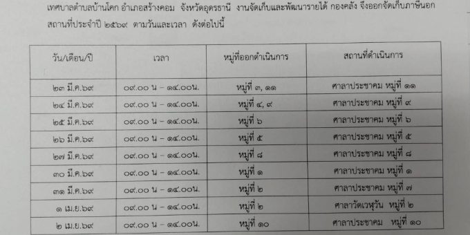 Server Time : 16 March 2026 6:00 pmเทศบาลตำบลบ้านโคก อำเภอสร้างคอม จังหวัดอุดรธานี 41260 โทรศัพท์ 042–145258