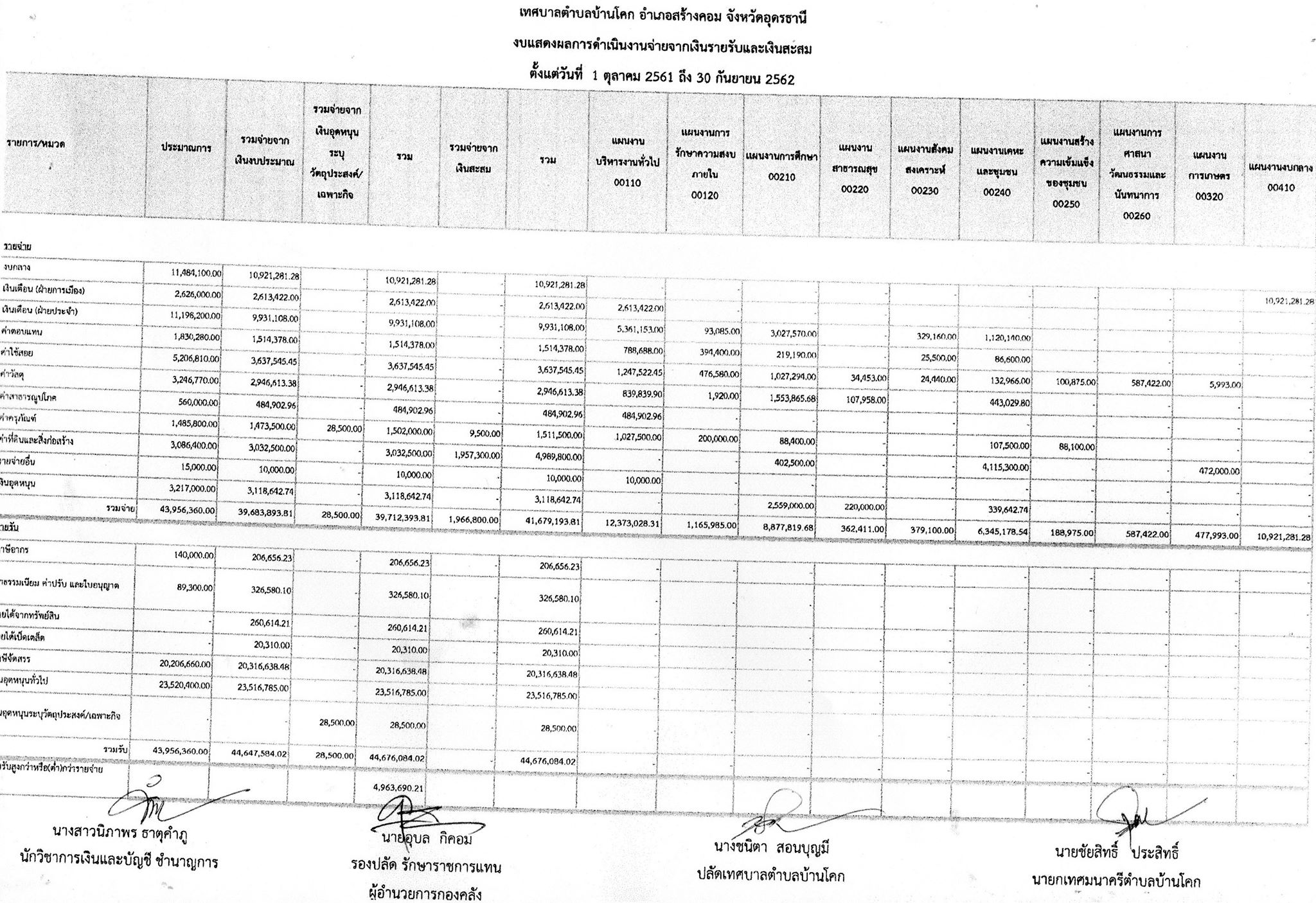 รายงานงบแสดงฐานะการเงิน ประจำปีงบประมาณ 2562
